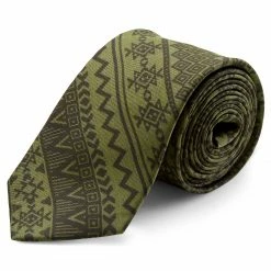 Want to cultivate a stylish, modern look? Try this Aztec inspired khaki print tie. The muted colors team well with other colors, allowing for easy wearing. It comes gift boxed too, and the packaging is made with sustainable materials.