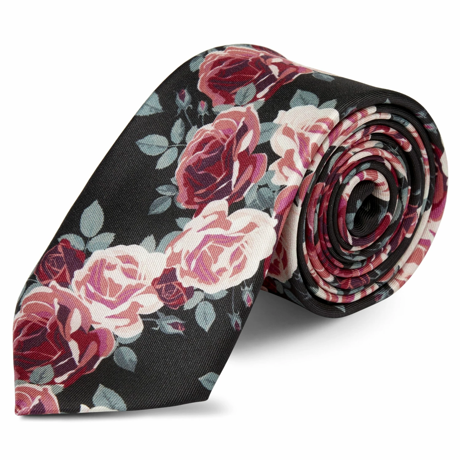 The versatility of this black tie with subtle pink roses will take you from a casual brunch all the way to your best mateβs wedding. Soft silk provides a smooth tying experience, and the quality Danish design will look as good today as it will at that friendβs retirement party.