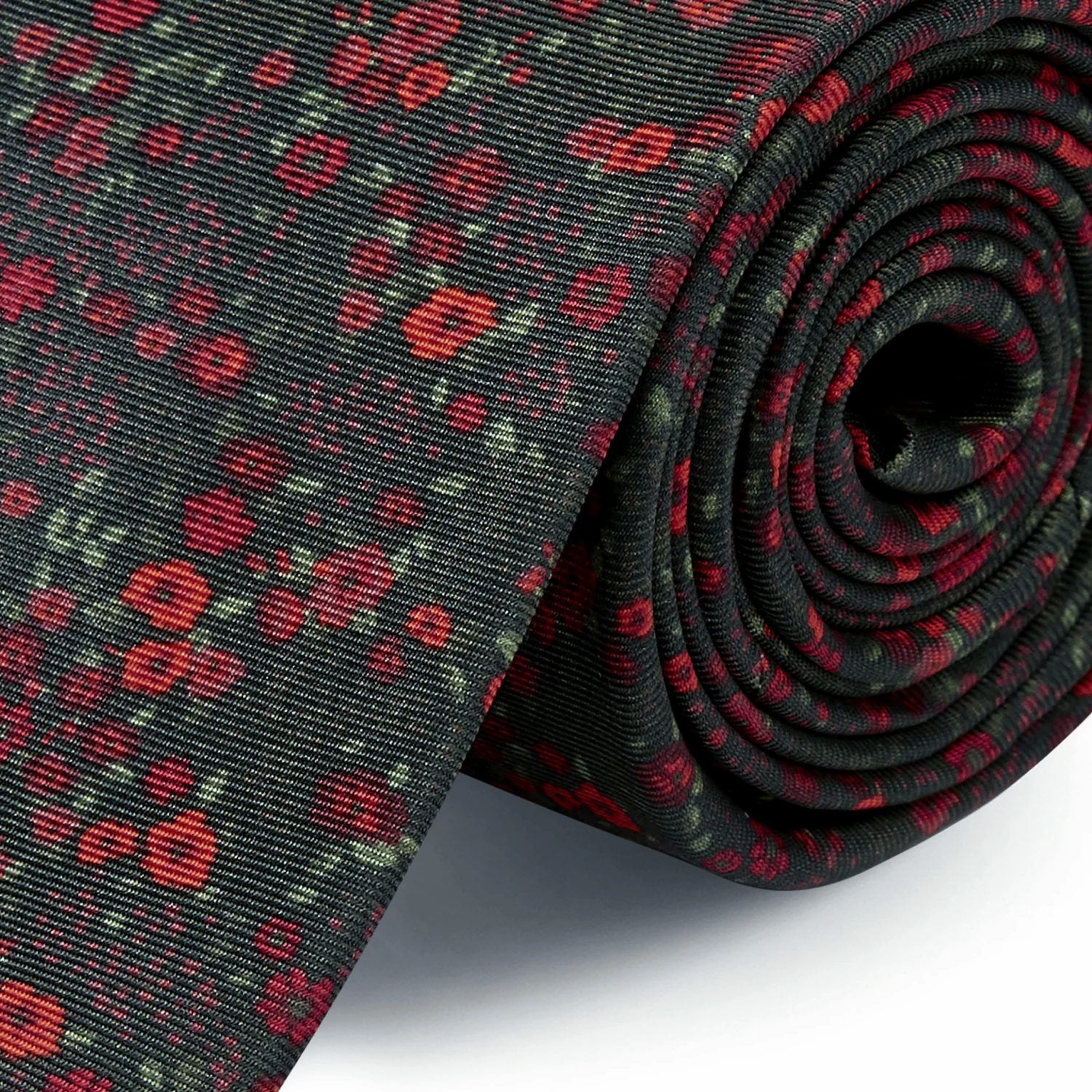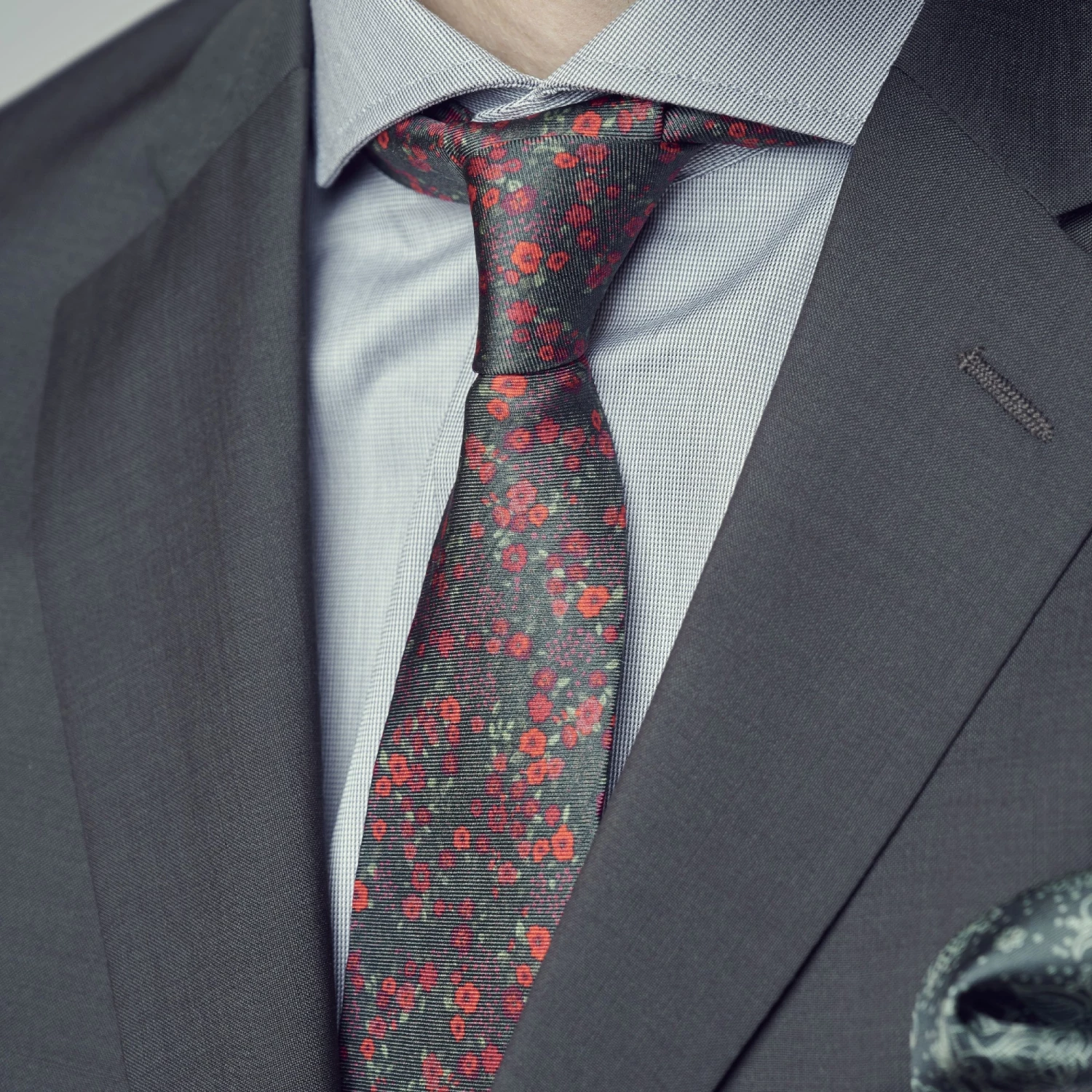 This floral print is reminiscent of a bygone era yet still looks stylish today. An allover pattern of intricate red flowers is highlighted against dark green β a handsome color combination designed in Denmark, and made from pure silk.