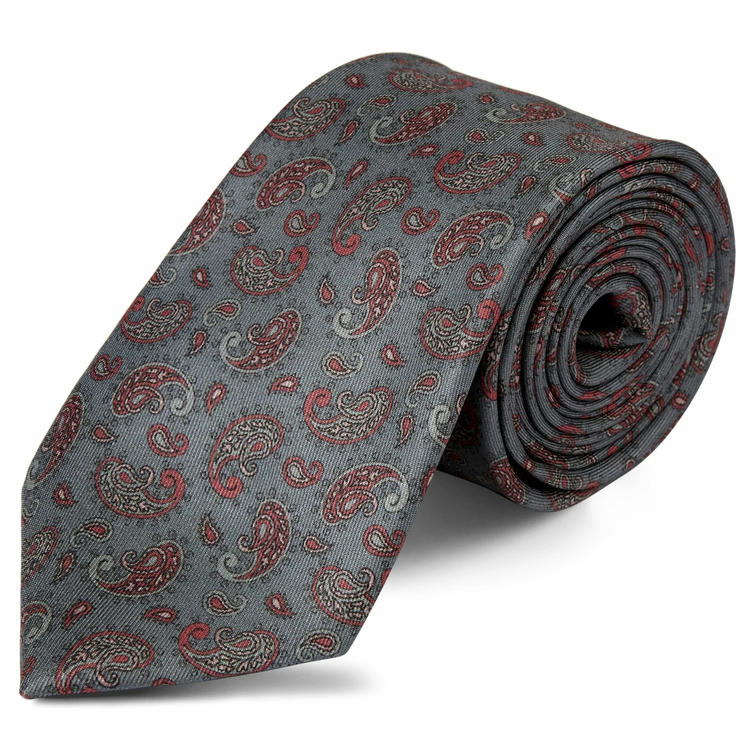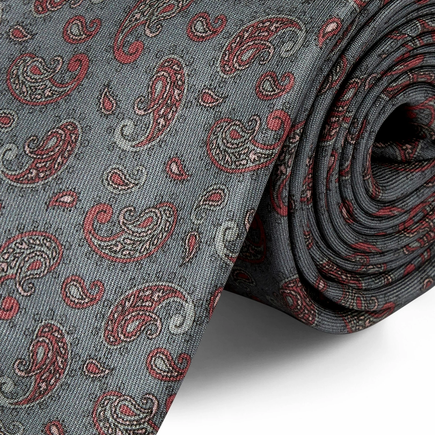 Ideally suited for work and casual wear, this neutral grey tie with paisley accents is made with soft, luxurious silk for a sophisticated touch and a smooth tying experience.