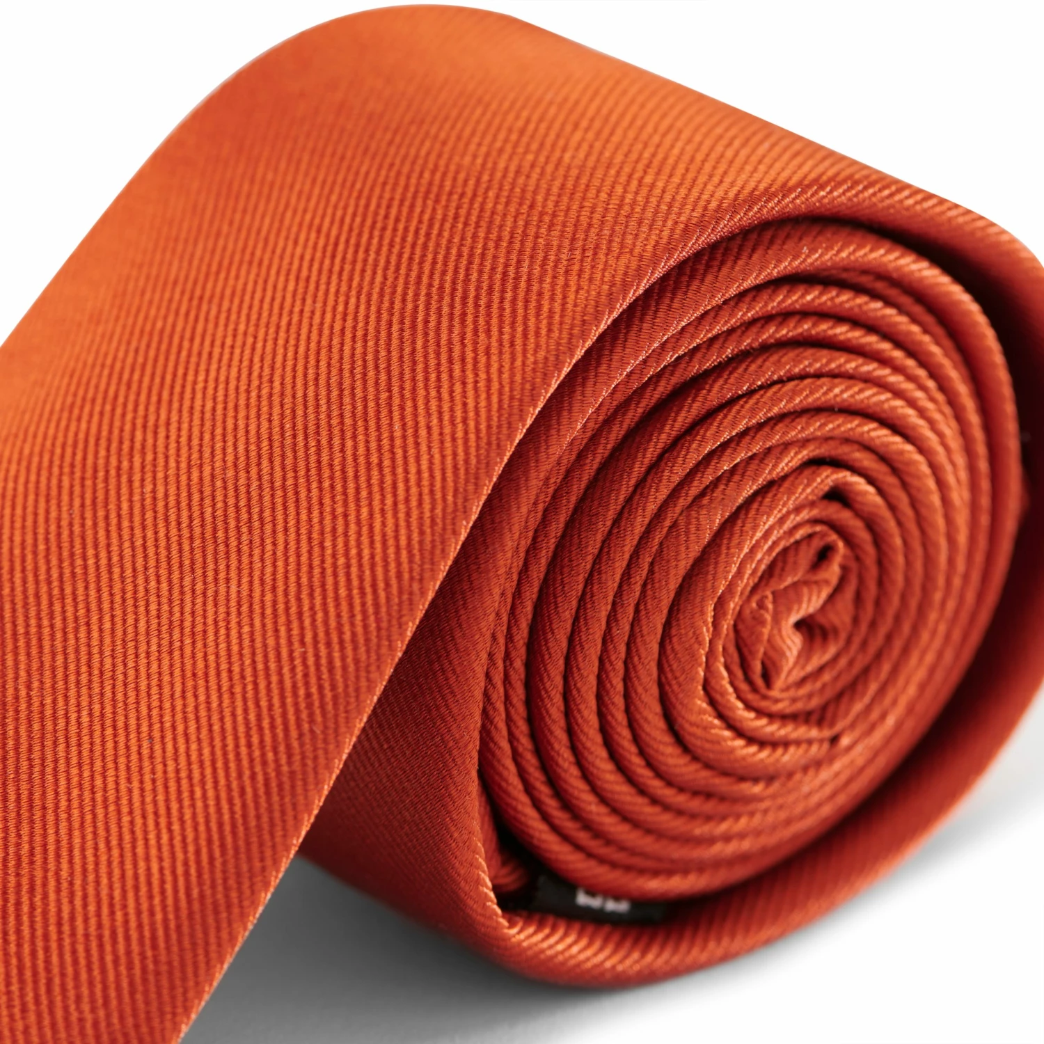 This orange necktie is cut from lustrous silk twill and is ideal for making a killer first impression. In a sea of mundane, dark colors⦠why not wear something that truly pops?