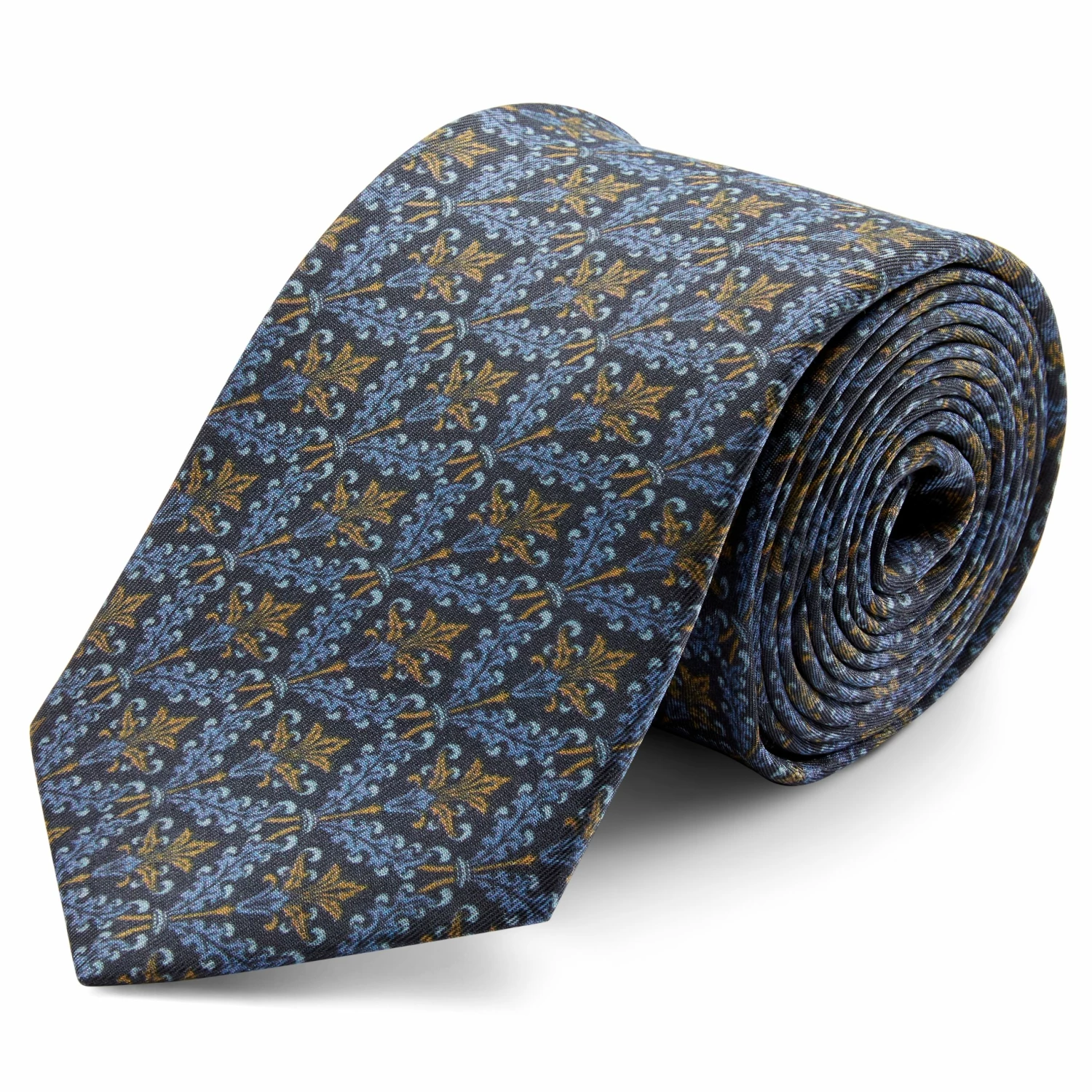 The vintage inspired design of this silk necktie speaks volumes about your style credentials. It features rich, dark colors that allow easy transitioning from day to evening. The perfect accessory for an impromptu, post-work visit to a secret cocktail bar.