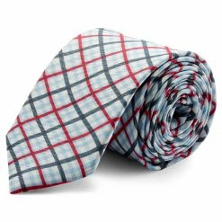 A cheeky little number with blue and red checks, this graphic necktie is sure to make your ensemble pop. Finely woven silk makes for an enjoyable wearing experience.