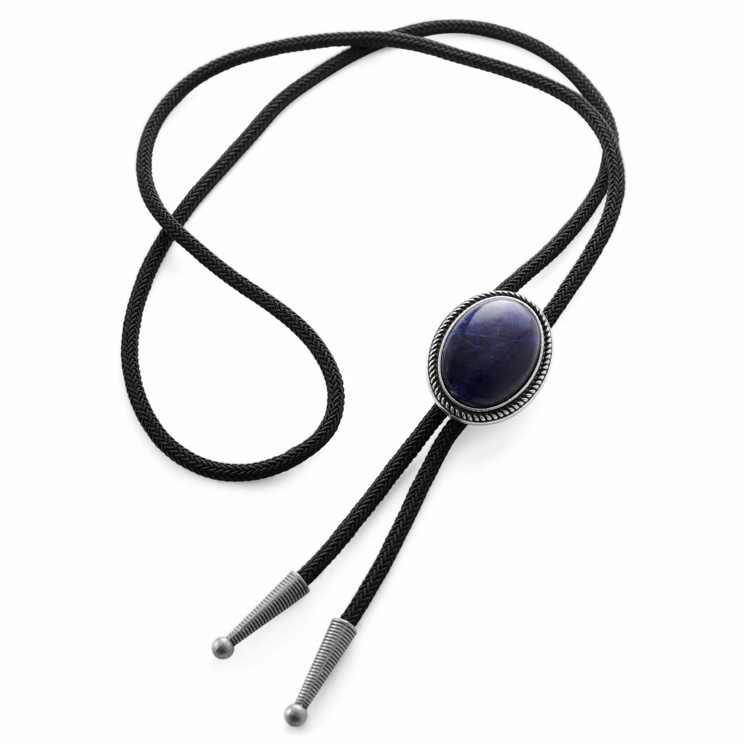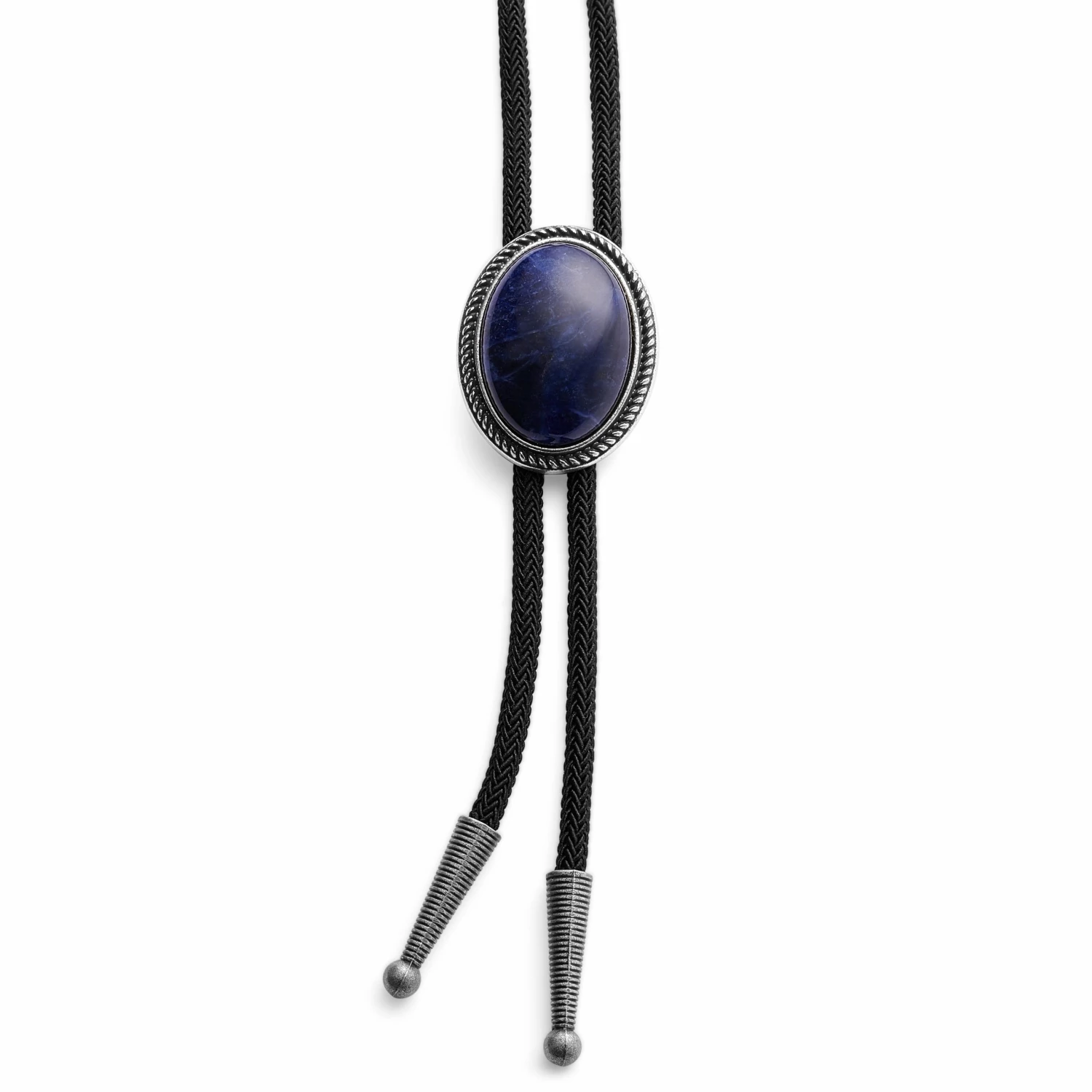 Made with black cord and a large dark blue stone on the slide. A secure Bennett-style clasp lets you quickly and easily adjust the height and look.