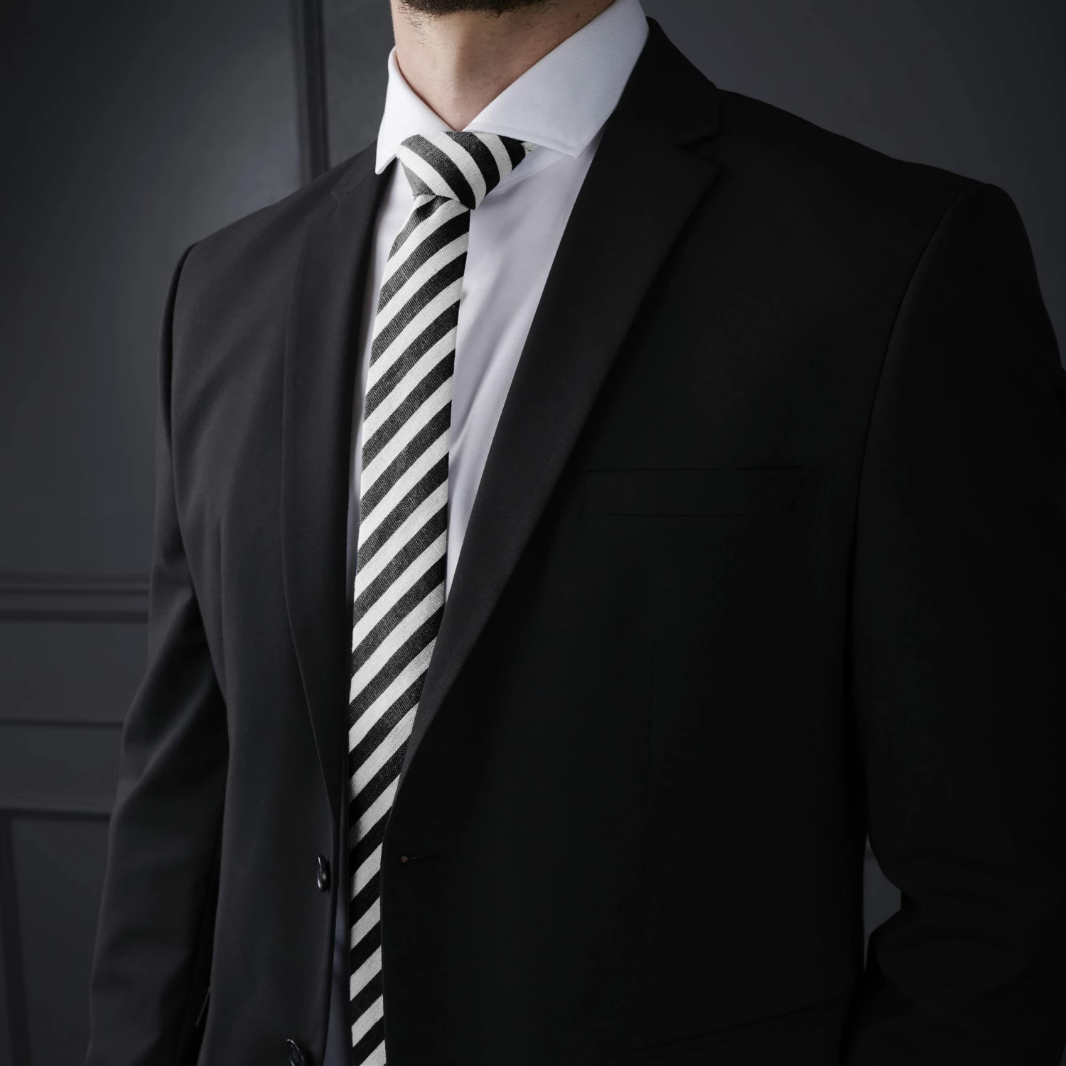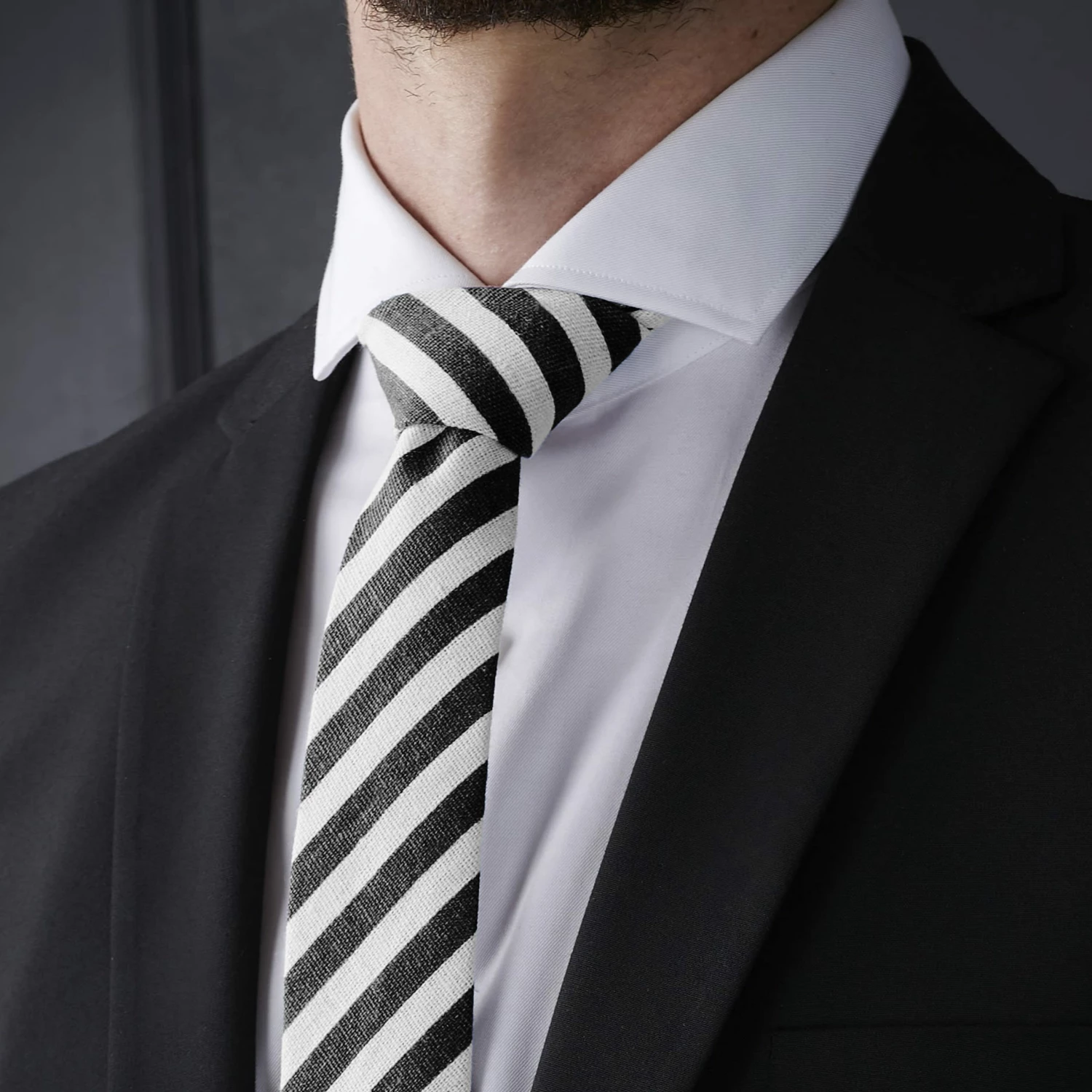 As stripy as it gets. This monochromatic tie enhances your outfit with a dash of debonair.