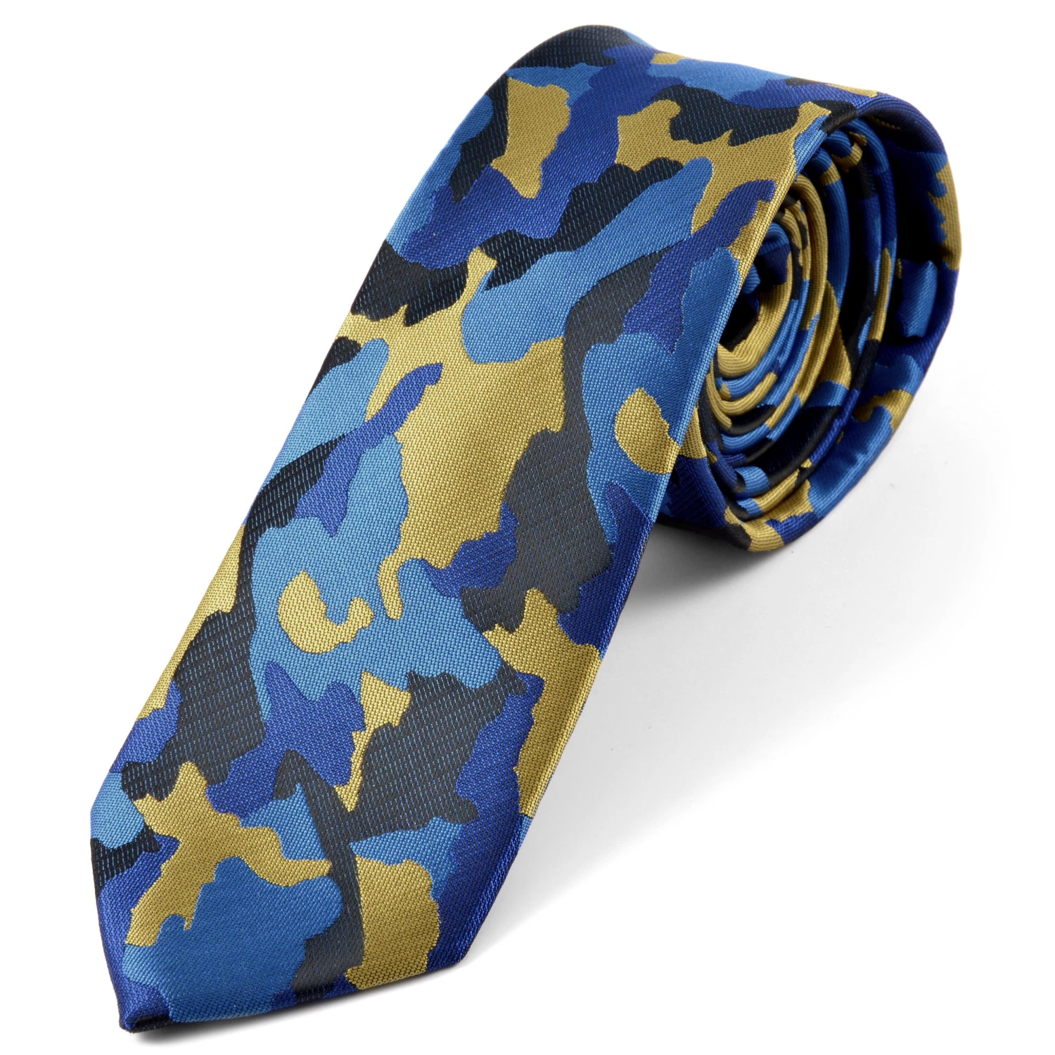This tie features a distinctive blue camouflage pattern, perfect for the adventurous, modern man. Made from wonderfully soft, easy-to-tie polyester.