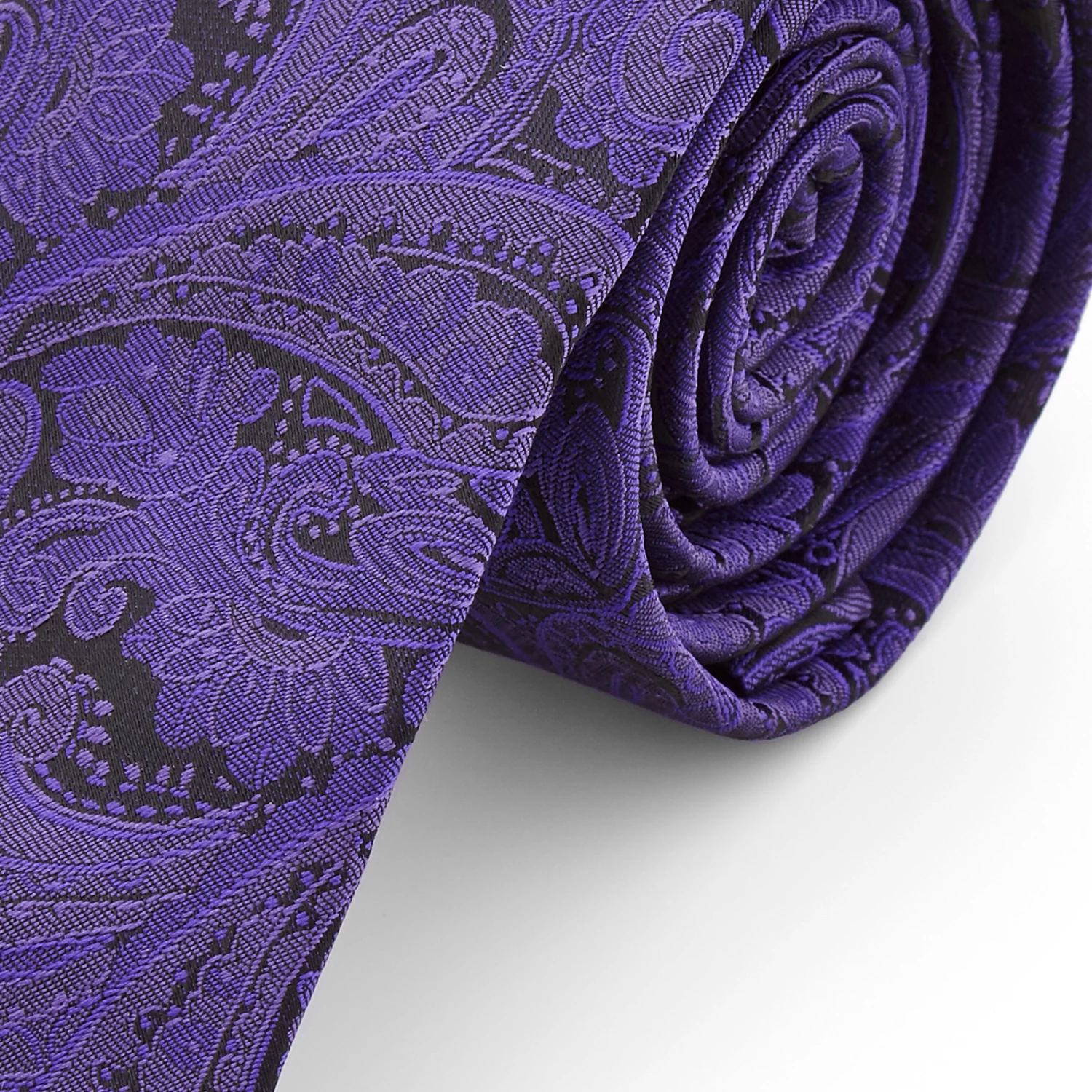 An intriguing and elegant color, dark purple is suitable for any occasion. This beautiful polyester necktie featuring a paisley pattern and deep purple color is the perfect match for any formal or casual style.