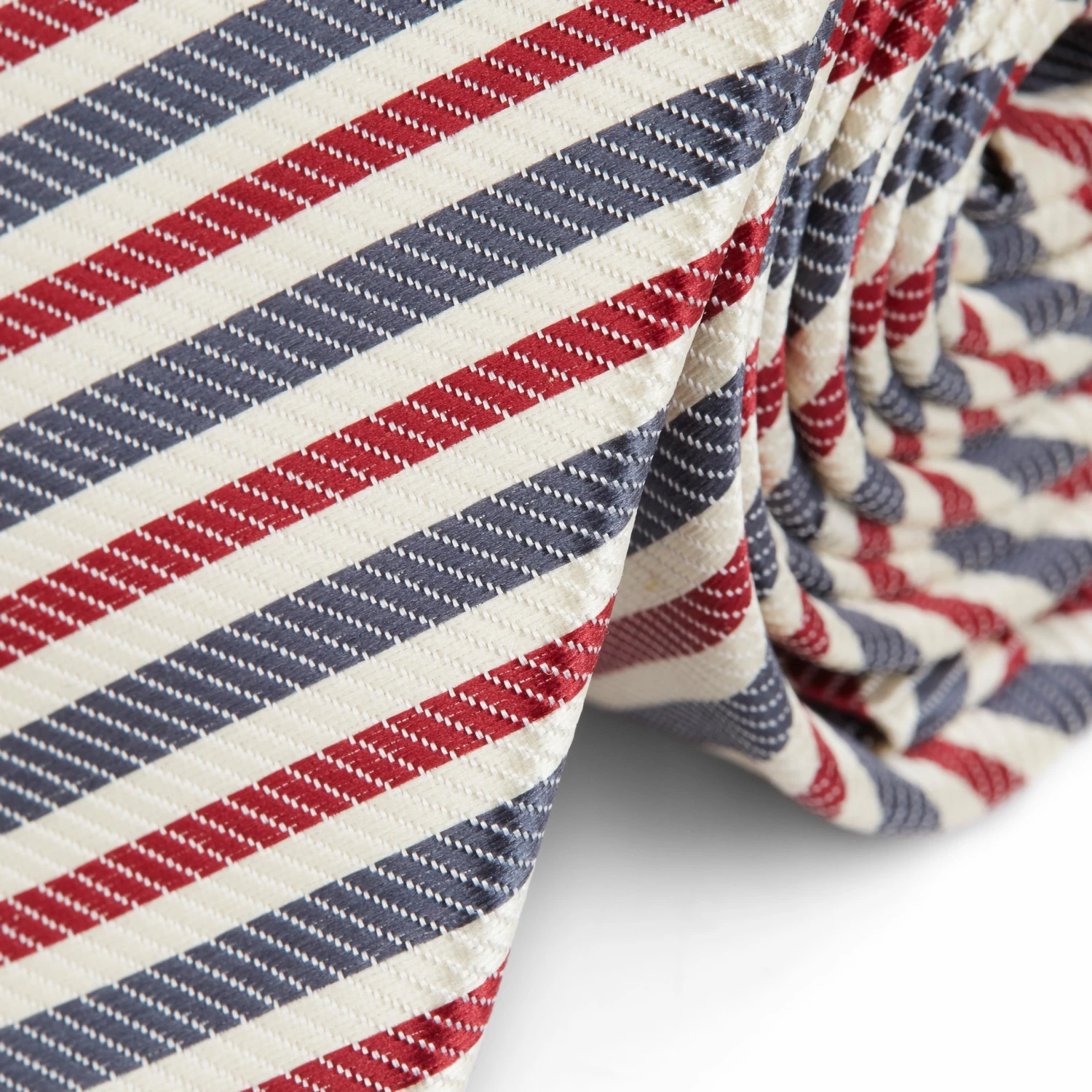 Subtly faded for a vintage feel, this bold tie features red and blue stripes for an understated twist to your outfit.