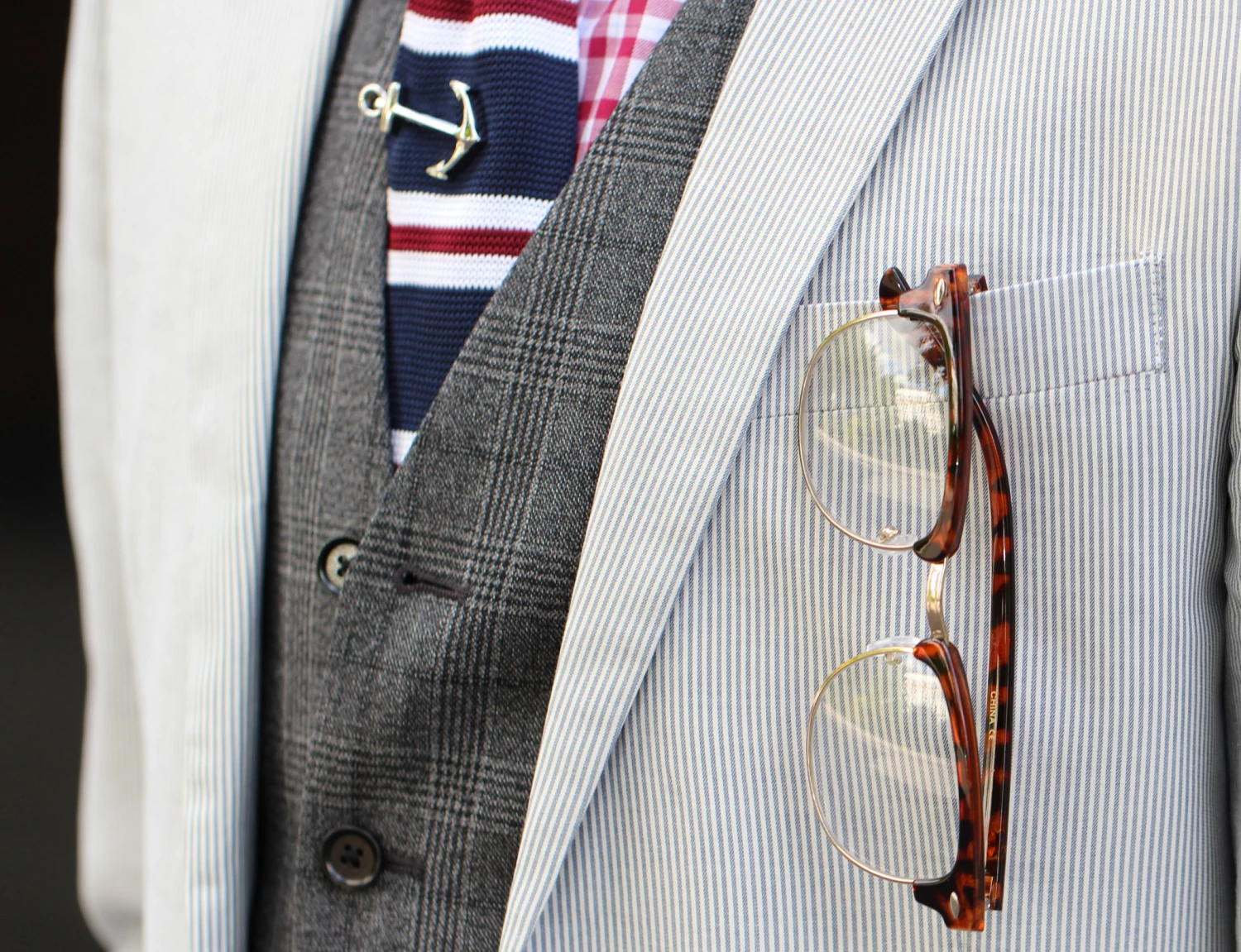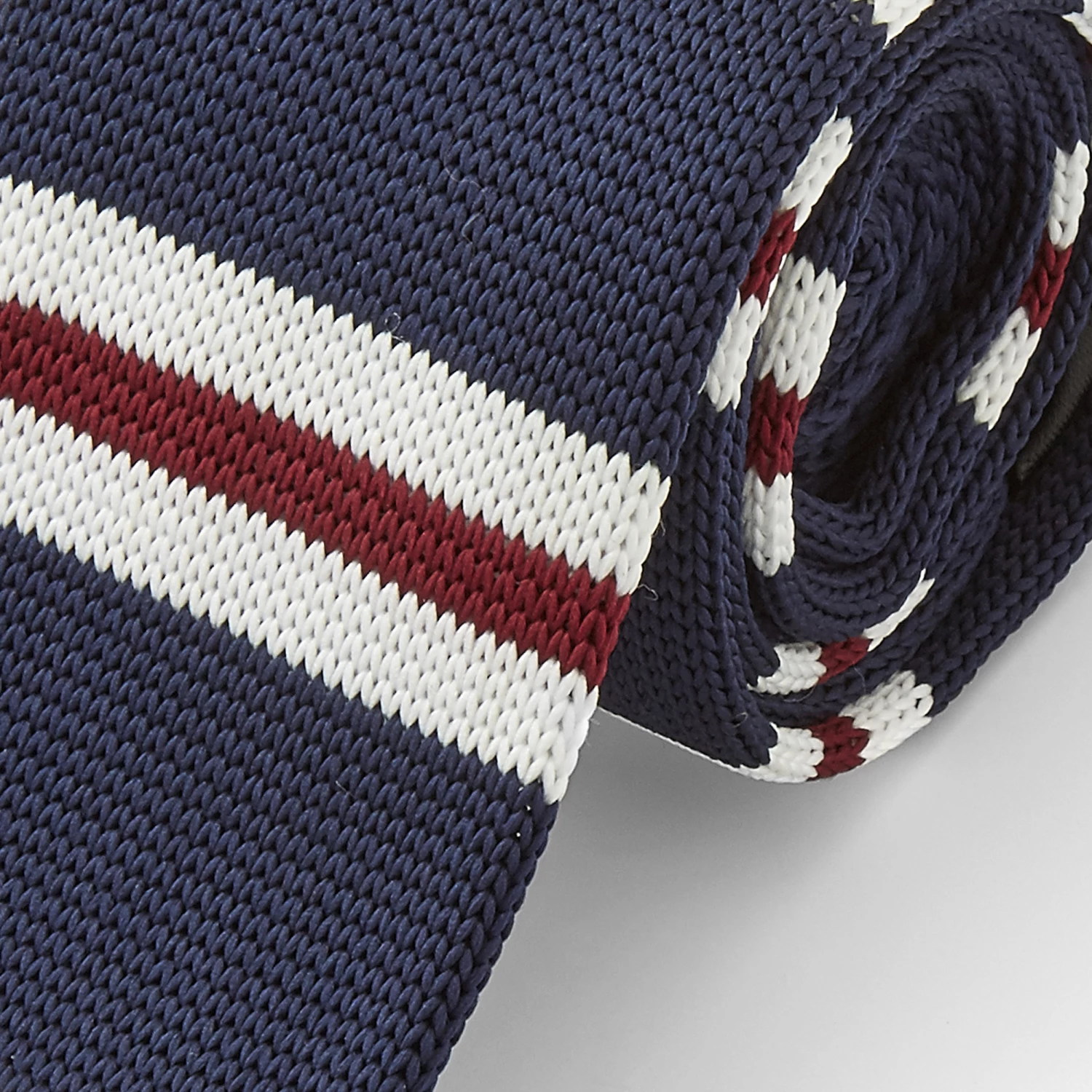 Stately stripes in red, white, and blue give this tie a formal air.