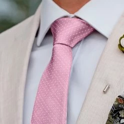 Thanks to a bright pink thatβs sure to catch the eye, this polka dot necktie has a playful tone thatβll brighten your day.