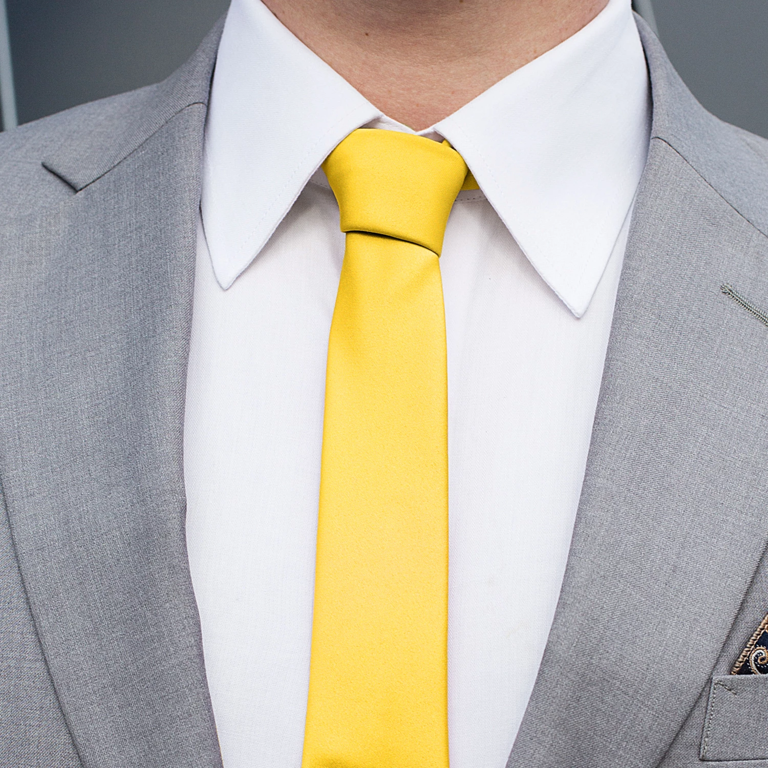 There’s nothing like a vibrant splash of color to really make an ensemble shine. This tie, in a brilliant shade of yellow, does just that.