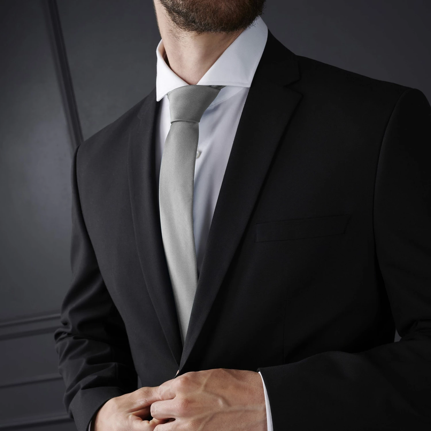 This wide gray tie will complement any light or dark formal suit, as well as match with tons of your more casual dress clothes. Versatile, sleek, classic. The possibilities are endless with this gorgeous piece.