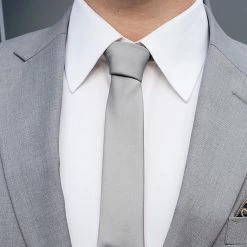 Every man needs a plain gray tie in his wardrobe. Perfect for business but flexible enough for casual wear, this elegant piece does well with both light and dark tones.