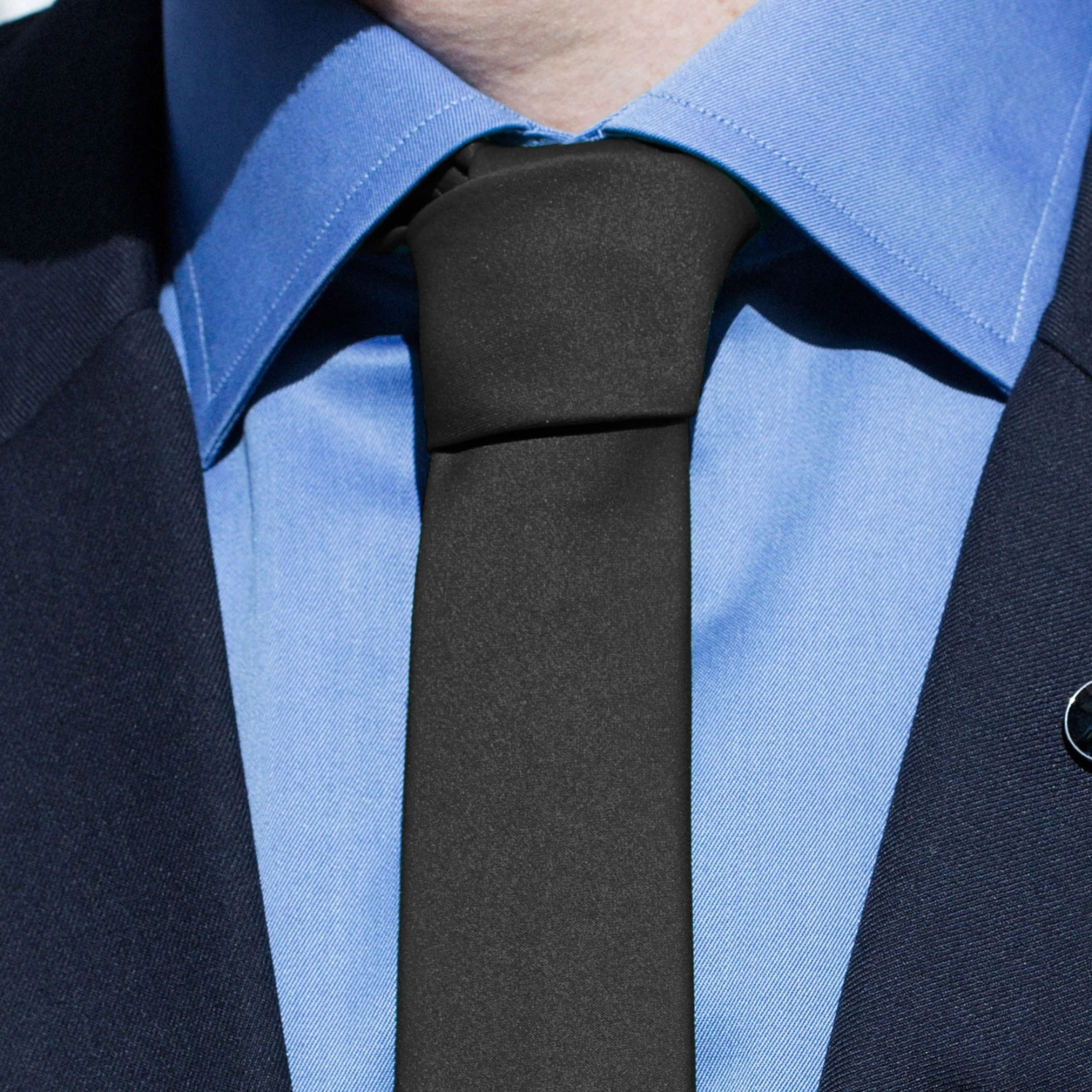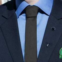 No closet is complete without a black necktie. Even better, this one’s shiny, adding some extra flair to that classic look.