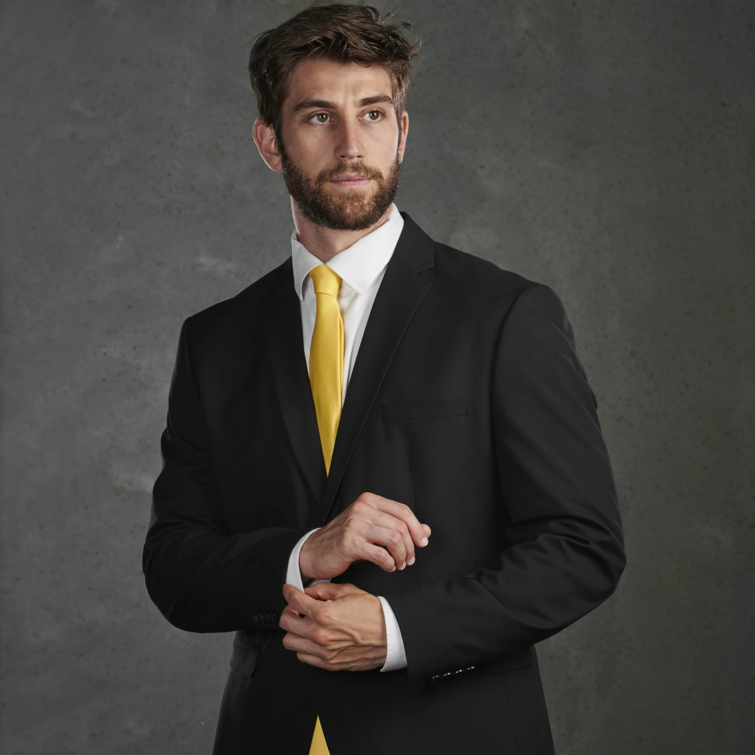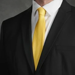Bring some life to your dress clothes with this bold, canary yellow necktie. Makes a great contrast with subtle, neutral tones. Wide design is perfect for business and casual attire alike.