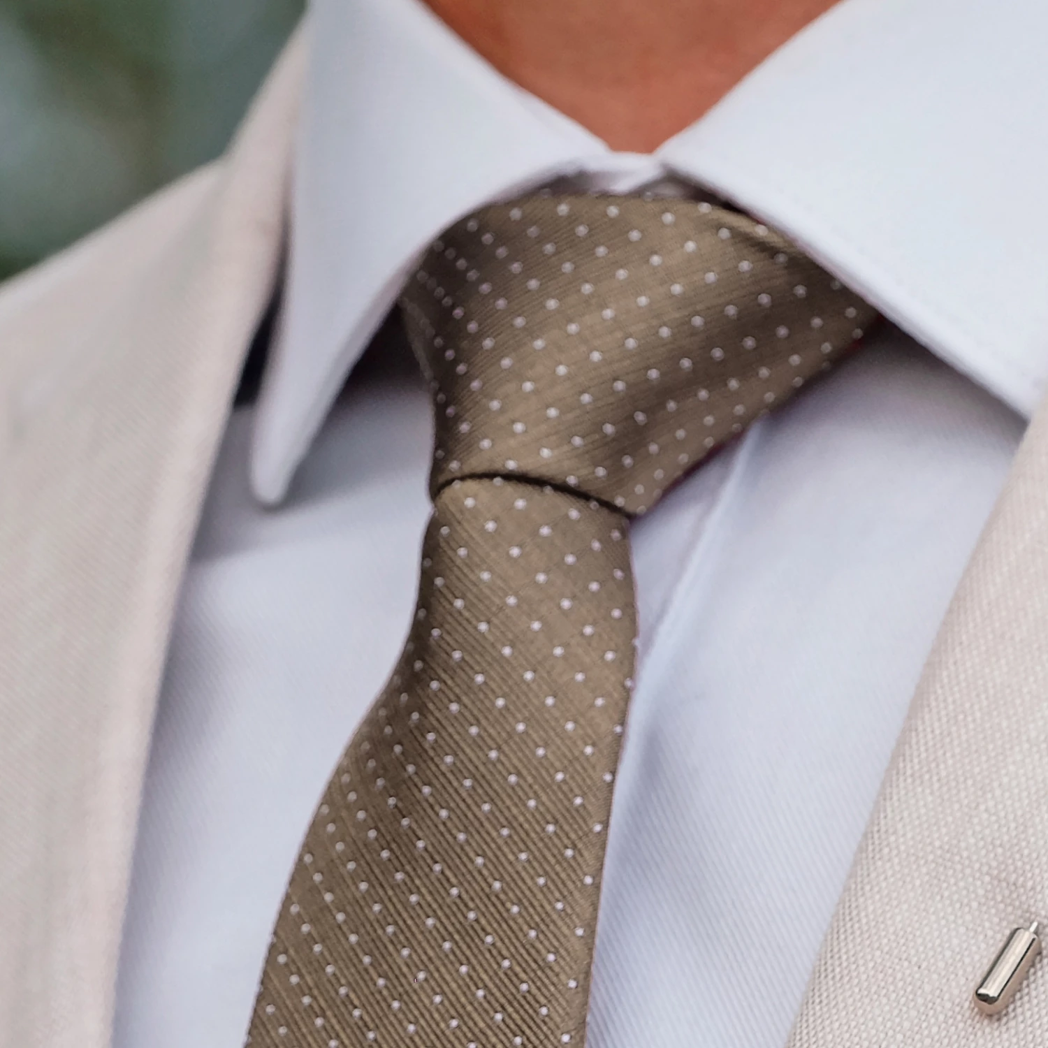 Carefully crafted from soft silk for a fine, lustrous effect, this necktie has a subtle polka dot motif lending a refined look to your outfit.