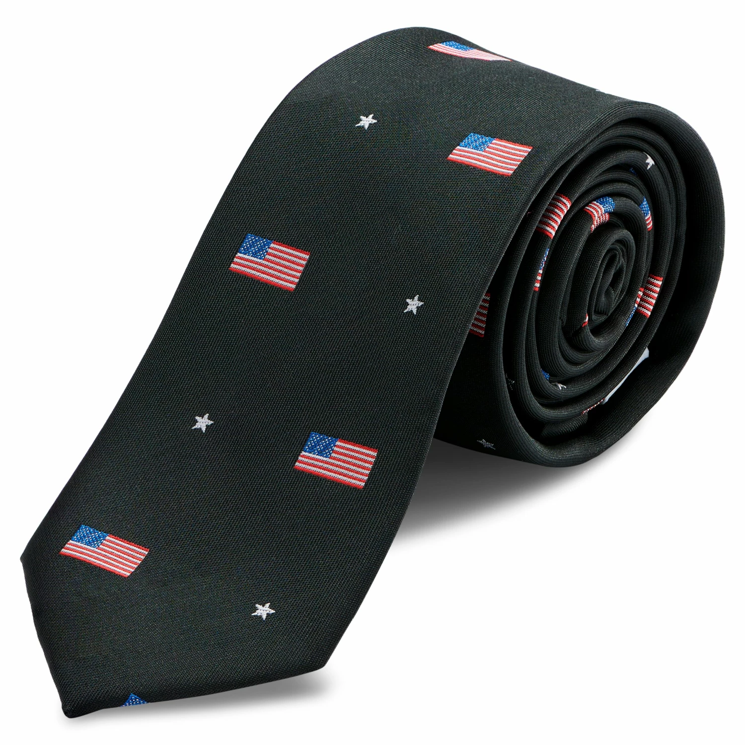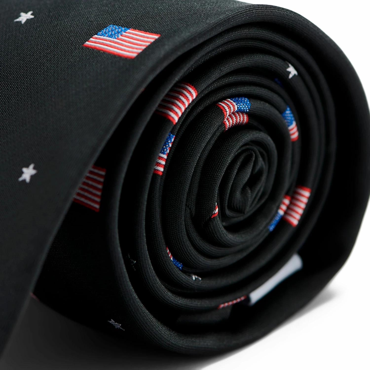 The black background is broken up with tiny American flags in the red, white, and blue that theyβre famous for. Handmade from soft, durable polyester.