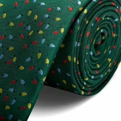 Made from lightweight, durable fabric thatβs easy to tie and comfortable to wear. Features looping strands of multicolored bulbs on a green background.