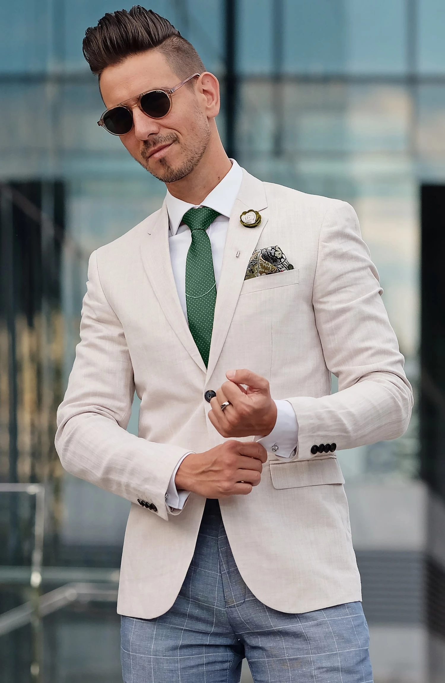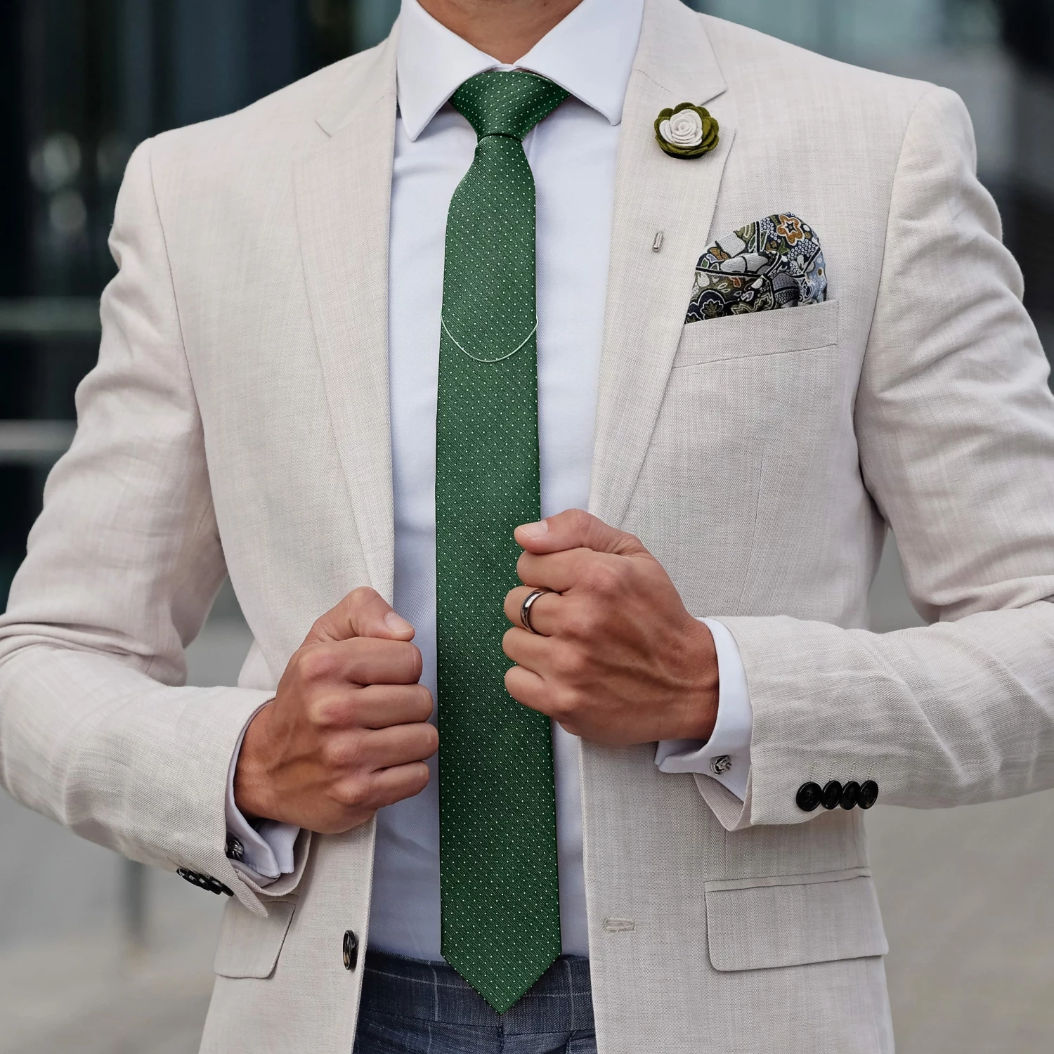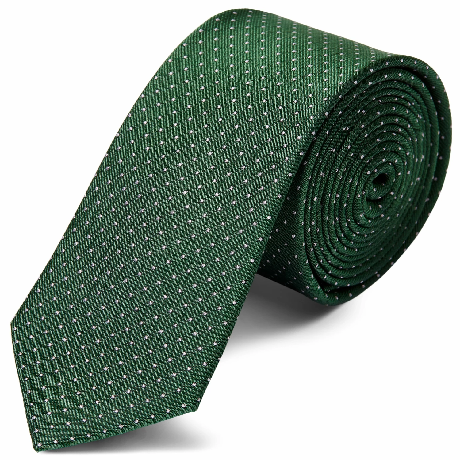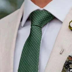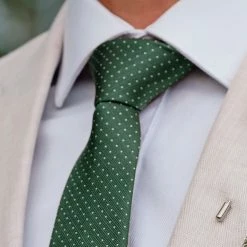 This deep green necktie adds a touch of natural class to your outfit thanks to a fine polka dot design on soft, lustrous silk.