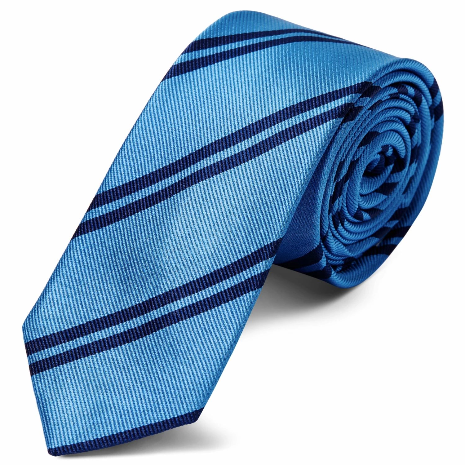 This two-toned necktie sets dark navy stripes against a lighter background for an understated pattern that adds a simple elegance to your outfit.