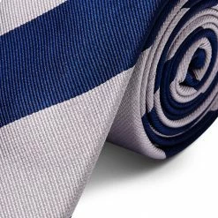 Flash Sale ๐ Trendhim Silver & Navy Blue Bold Diagonal Striped Silk Tie ๐