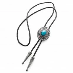New ๐งจ Fort Tempus Turquoise Stone Adjustable Braided Leather Bolo Tie ๐