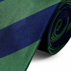 Outlet โ Trendhim Wide Navy Blue & Green Bold Diagonal Striped Silk Tie ๐