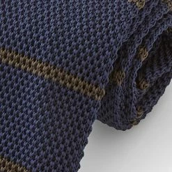 Promo ๐ Tailor Toki Navy Blue & Brown Striped Polyester Knitted Tie ๐