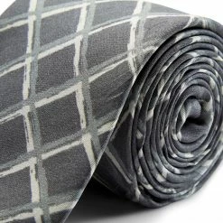 Top 10 ๐ Bohemian Revolt Grey & White Squared Pattern Silk Tie ๐
